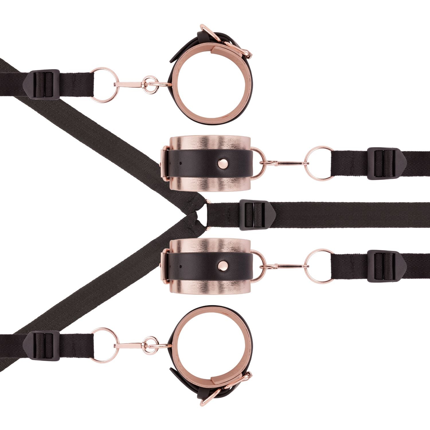 The set features softly padded cuffs that feel pleasant against the skin while providing secure support without uncomfortable pressure. Both wrists and ankles are gently held in place, while the fully adjustable straps can be adapted to different bed types and body shapes. This creates a stable yet relaxed experience where freedom of movement and control are perfectly balanced.