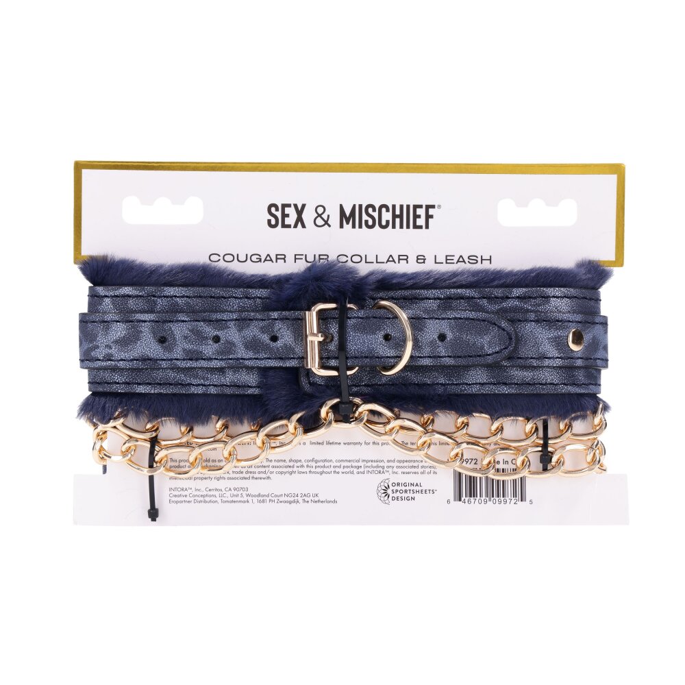 Sportsheets - Cougar Fur Collar & Leash - Black