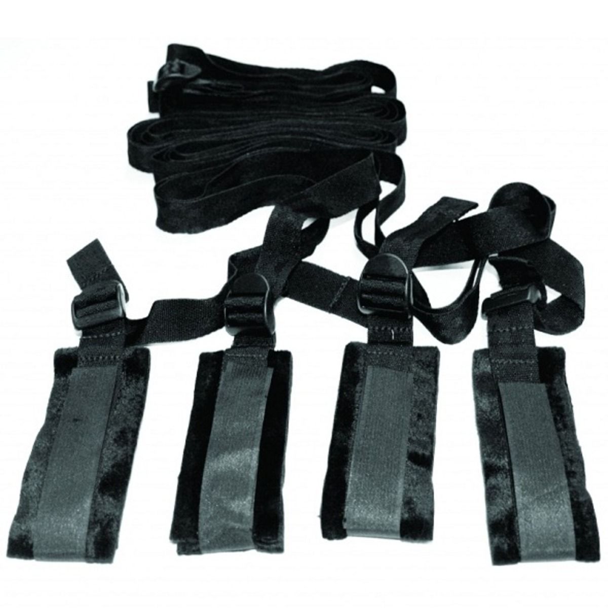 Experience simple and versatile bed bondage with the S&M Bed Bondage Restraint Kit from Sportsheets. The set includes four 152 cm adjustable straps with cuffs and one 152 cm connector strap, allowing you to secure your partner safely and comfortably. Perfect for beginners and experienced users alike, this kit provides flexibility and playful bondage fun in your own bedroom.