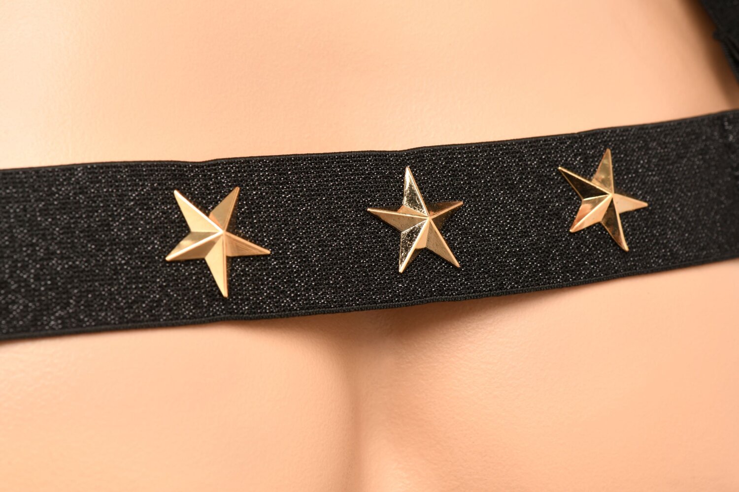 Add some flair to your wardrobe with this comfortable, stretchy harness and matching armbands! The nickel-free, metal stars adorn the front of the harness and the armbands to easily complement any outfit! The stretchy material feels soft against the skin and is easy to hand wash or machine wash.