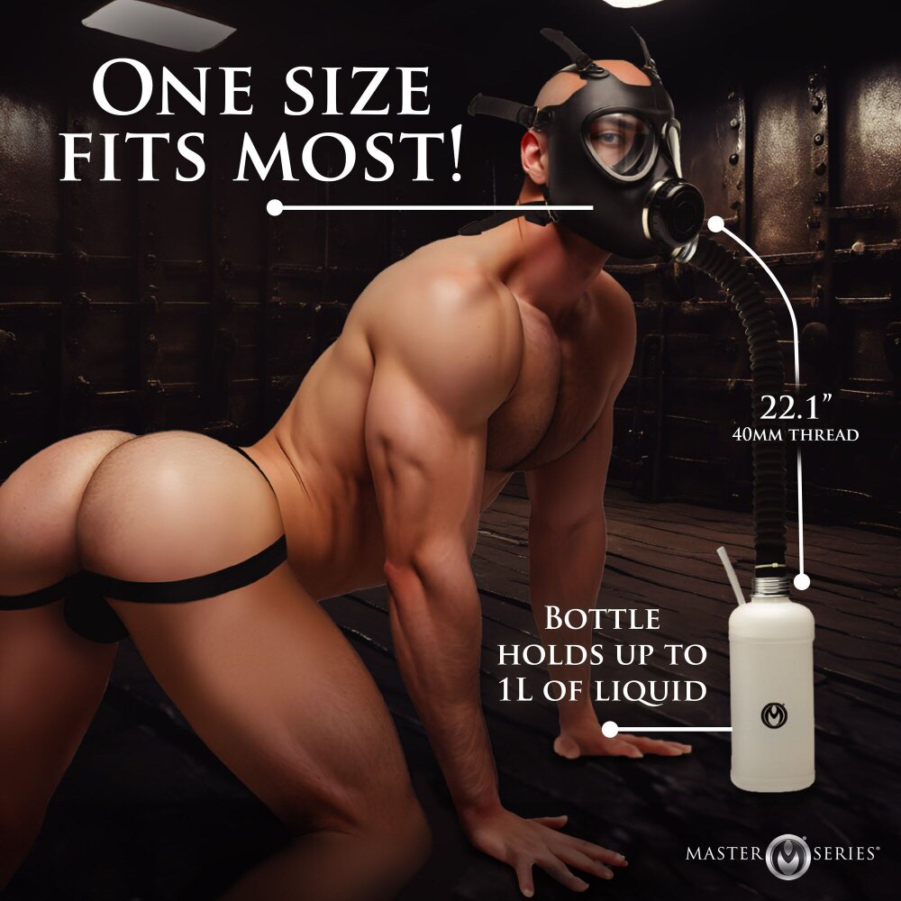 This mask, made of stretchy and body-safe silicone, features adjustable straps to ensure a comfortable and secure fit on most heads. The hose, approximately 56 cm in length, connects seamlessly to an aroma bottle, allowing you to add your chosen scents and liquids to deepen your experience. A specially designed one-way breathing valve regulates the intake of air and aroma, while allowing you to exhale carbon dioxide. As the glasses in front of your eyes fog up, your senses are further challenged, adding an exciting dimension to your play. Additionally, all metal parts are nickel-free, providing a sense of complete reassurance. Dimensions Mask: One size, fits most users Hose: approx. 56 cm long, 40 mm thread Bottle: Capacity up to 1 liter Materials Mask: Silicone, nickel-free metal, and plastic Hose: Rubber, nickel-free metal, fabric Bottle: Plastic Note: Only use water-based lubricants and avoid contact with latex, silicone, or petroleum-based products.